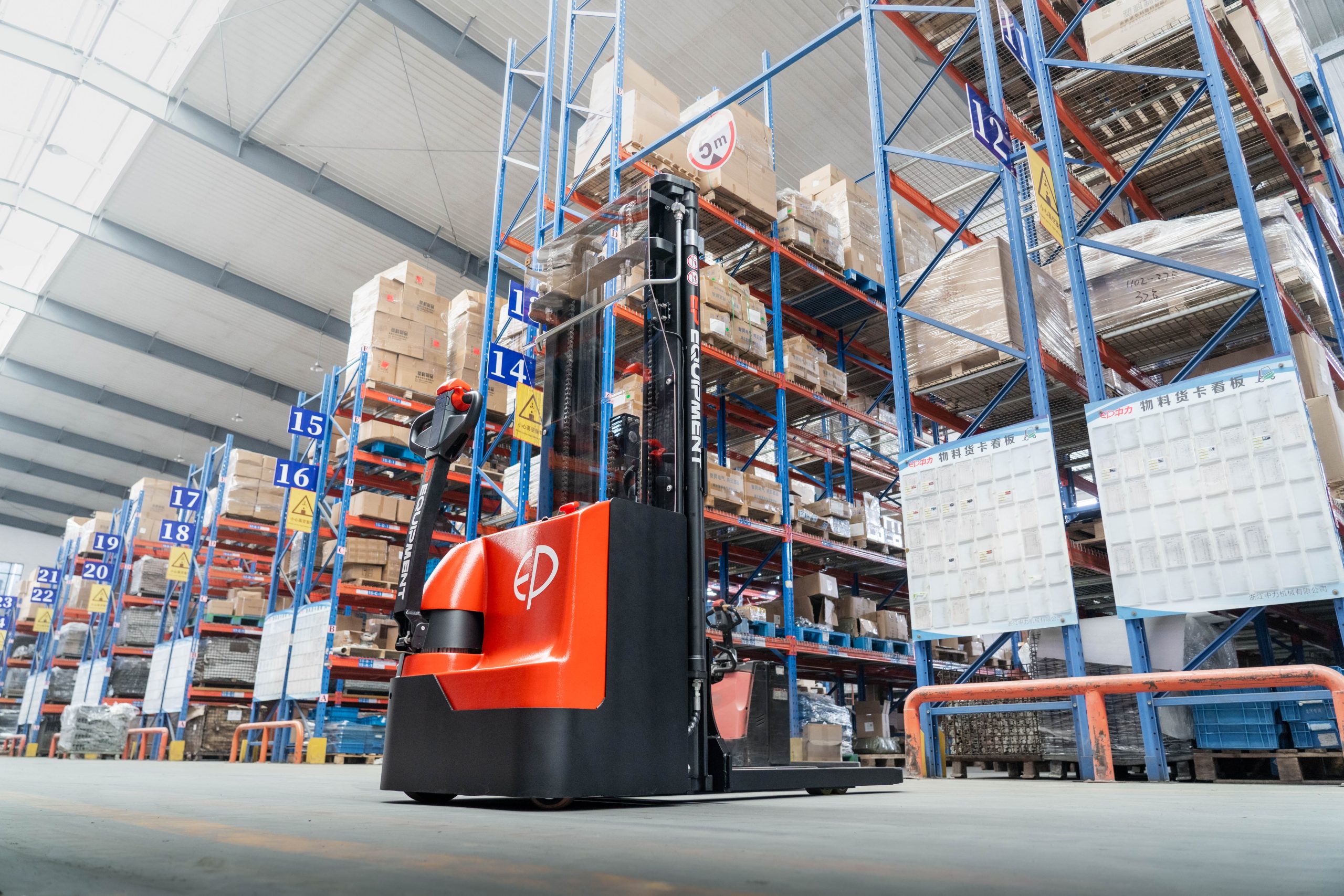De WSA161 van EP Equipment is een krachtige elektrische stapelaar, speciaal ontworpen voor intensief gebruik en met een indrukwekkende hefhoogte van maximaal 5,5 meter. De lithium-ionbatterij van 24V/100AH biedt aanzienlijke industriële kracht en is gemakkelijk op te laden met de ingebouwde 230V-lader.